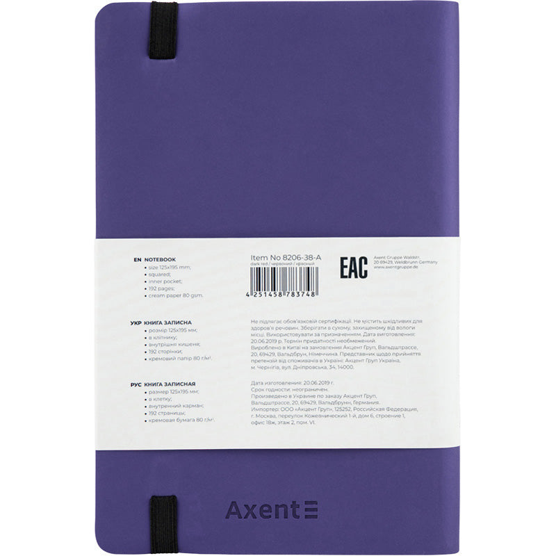 Notebook Axent Partner Soft 8206-38-A, 125*195 mm, 96 sheets, squared, light blue